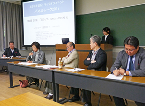 また、ESS半世紀委員会が主宰した「パネルトーク2015、ESS・EFELって何だ?」では、本出良一副会長がコーディネーターを務め、パネラーの越智恵子、南村栄一、姜泳樺、中塚裕己の各氏がESSへの熱い想いや、活動への提言などを行いました。
